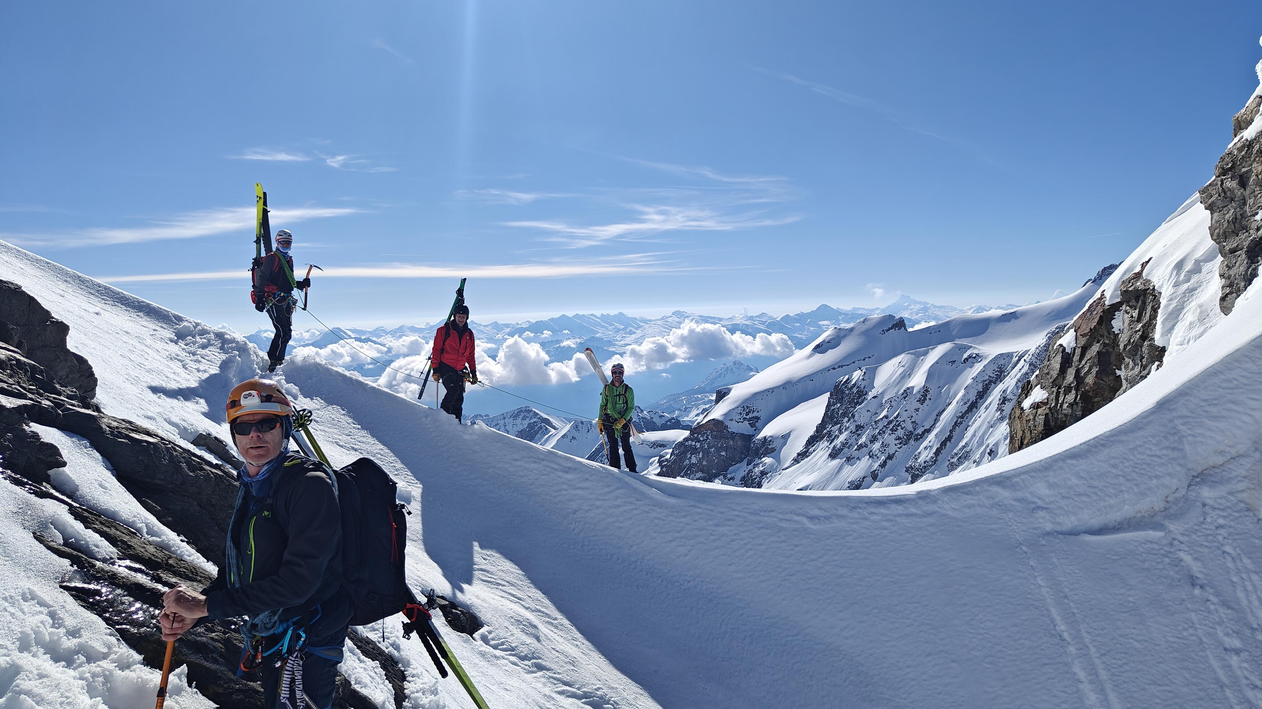 J2: départ pour le grand Aréa ( montée en sud et descente combe nord)